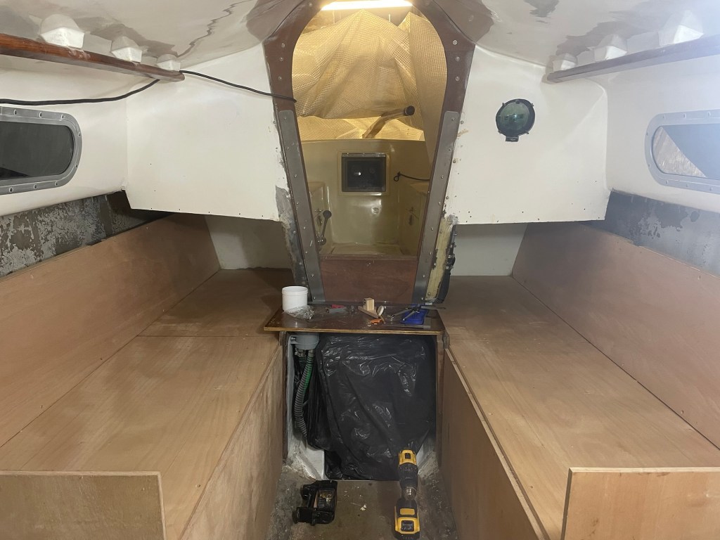 I was hoping to integrate my toolbox into a storage unit amidships on the port side, but it wouldn’t fit. Back to the drawing board.